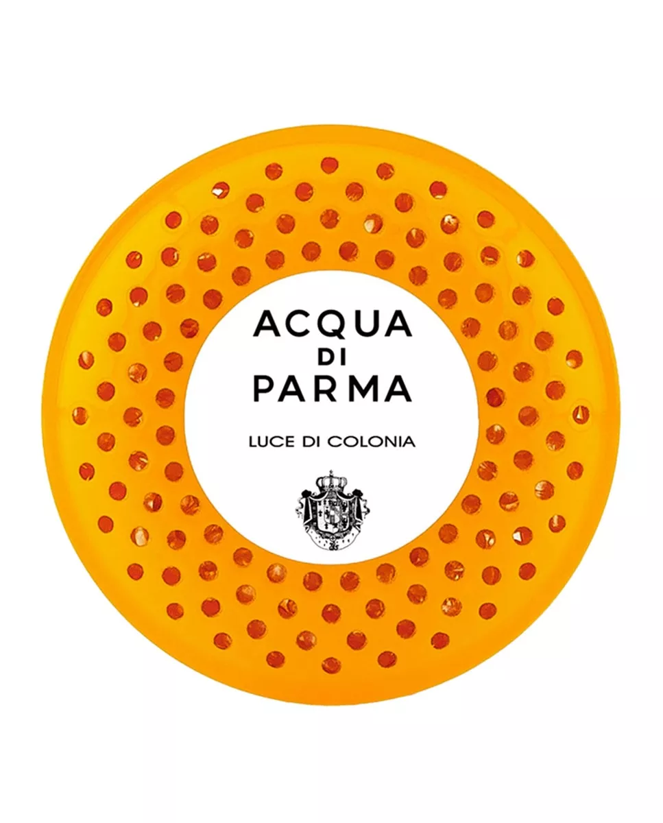Acqua di Parma Recarga de Fragancia Luce Di Colonia Acqua di Parma DescripciónInfunde una sensación de brillo radiante y ligereza refinada en tu automóvil con el inconfundible aroma italiano de Luce di Colonia.Elegantemente atemporal, Luce di Colonia encarna la esencia por excelencia de nuestro universo olfativo. Inspirado en la firma Colonia, irradia brillo y ligereza a través de tu espacio con su armoniosa mezcla de esencias cítricas. Abre con la frescura chispeante de las notas cítricas y continúa con notas de corazón aromáticas, tanto florales como elegantes. El aroma se combina con notas de fondo amaderadas. Los recambios de fragancia son compatibles con el difusor de coche de nuestra colección Airound. Una vez que se abre el sobre, la recarga de fragancia puede durar hasta 3 meses si no se usa en ningún dispositivo.Familia Olfativa:Cítricos? Las recargas de fragancias son compatibles con el Car Diffuser de nuestra collección Airound.. ? Una vez abierto, la recarga de fragancia puede durar hasta 3 meses si no es usada en ningún dispositivo.Familia olfativa: Cítricos Notas de cata: Naranja, limón, petitgrain, neroli, pachulí, vetiver