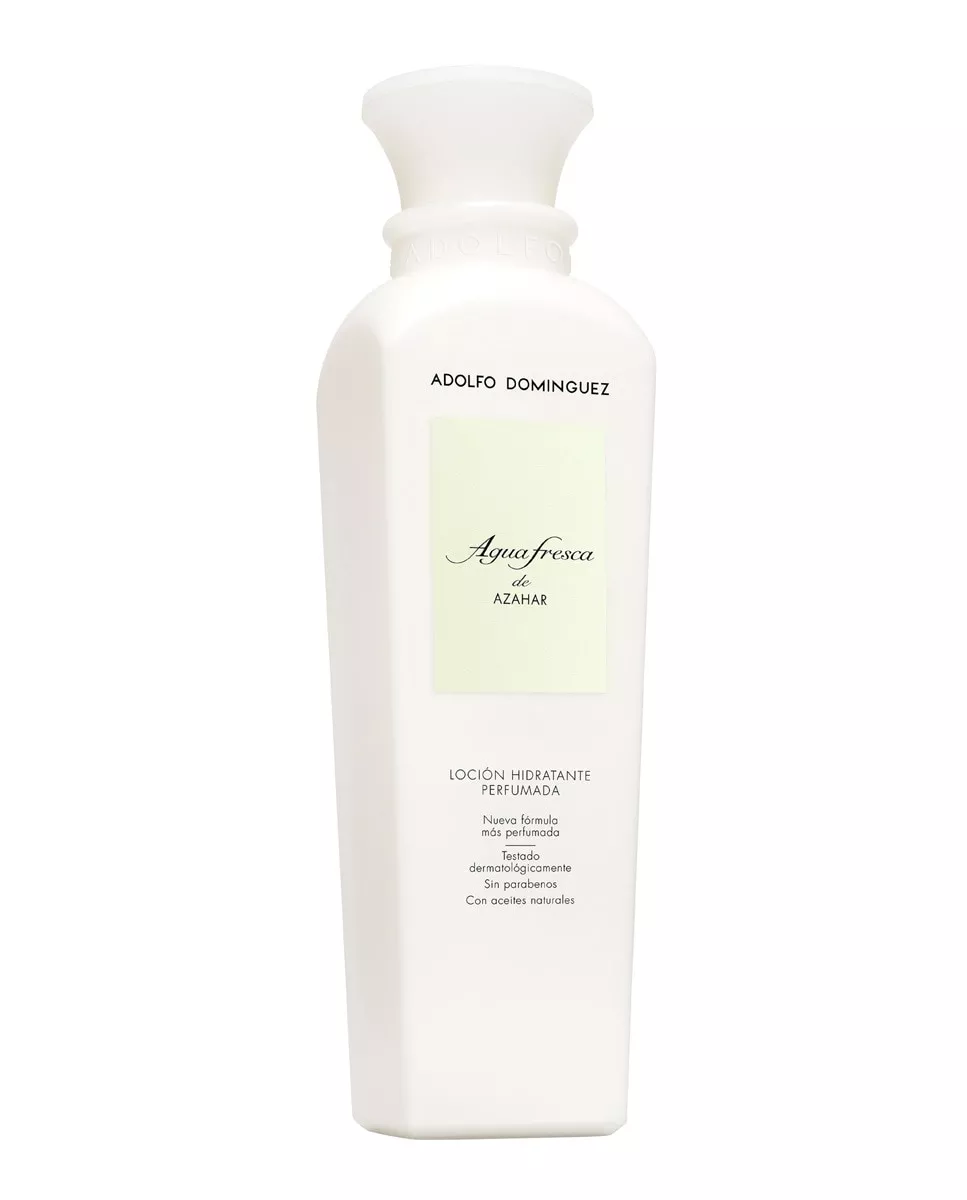 Adolfo Dominguez Loción Corporal Agua Fresca de Azahar Adolfo Dominguez DescripciónHidrata, reafirma y mejora la elasticidad de la piel, dándole un acabado aterciopelado. Deja la piel fresca y delicadamente perfumada.Principales Activos: Agua de azahar BIO (propiedades calmantes y purificantes), Vitamina E (propiedades antioxidantes), Pro-vitamina B5 (hidrata, suaviza y aporta uminosidad), con aceites naturales.Sin parabenos ni substancias genéticamente modificadas. Testado dermatológicamente. Rápida absorción. Para todo tipo de piel.