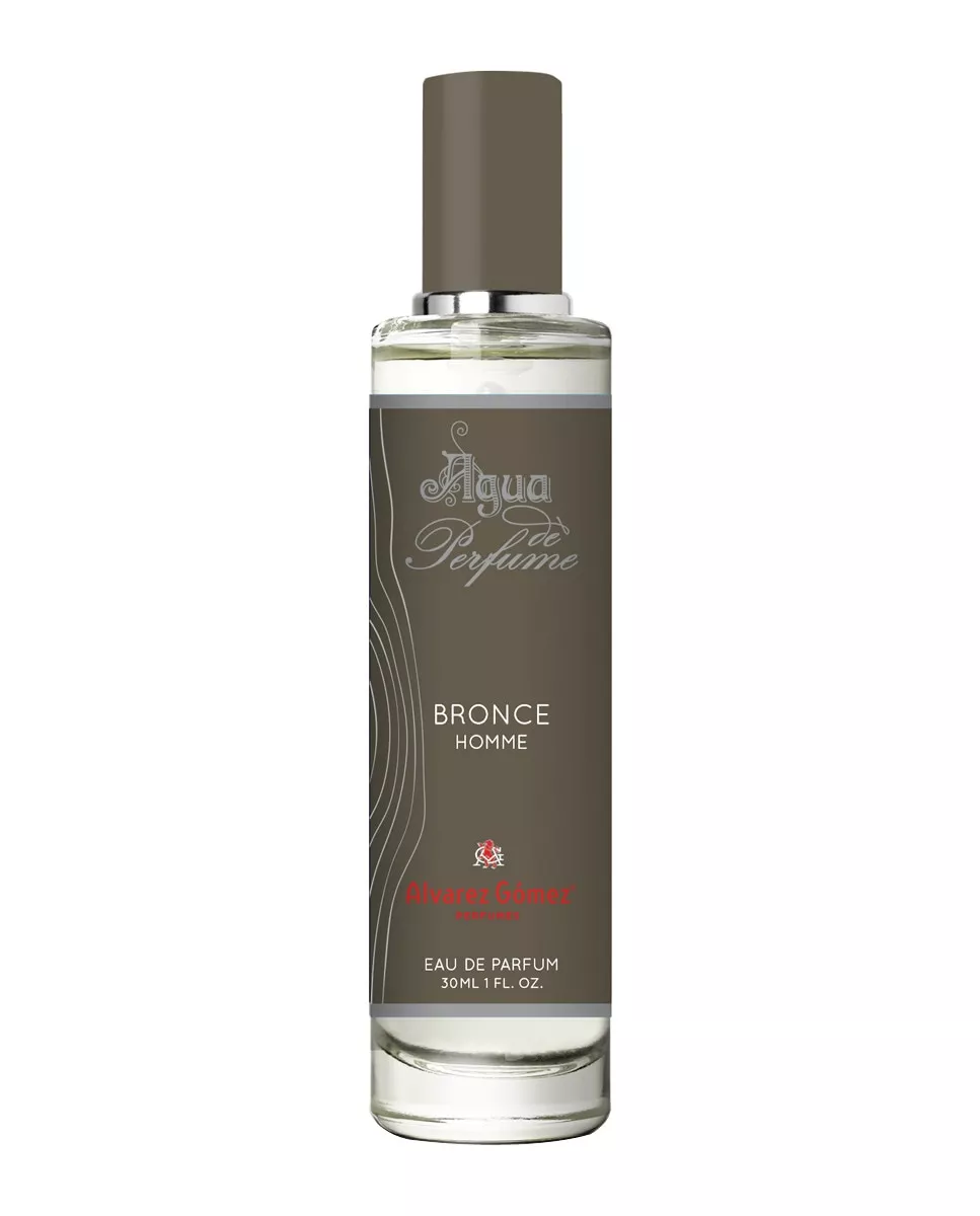Alvarez Gómez Agua de Perfume Bronce homme 30 ml Alvarez Gómez DescripciónEl Agua de Perfume Bronce es una fragancia eau de parfum masculina que te transportará a lo mas profundo de los bosques. La esencia del perfume comienza con una mezcla frutal de mandarina y pomelo, para seguir con detalles florales de rosa y canela. Finalmente, aparecen notas de cuero y patchouli que dotan al perfume de la sensualidad que lo distingue.El producto se presenta en un envase de vidrio templado de 30 ml perfecto para llevar a todas partes, con vaporizador y caja de cartón encelofanada.Notas:Afrutado - Floral - Cuero