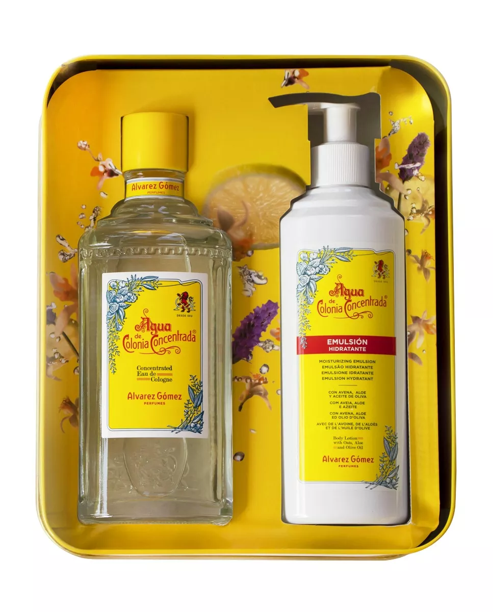 Alvarez Gómez Lata de Agua de Colonia Concentrada Alvarez Gómez DescripciónComposición del estuche:Agua de Colonia Concentrada 300ml + Emulsión Hidratante 280mlEl agua de colonia concentrada más tradicional y familiar de nuestro país. Regala nuestro fantástico estuche con Agua de Colonia Concentrada de Alvarez Gomez al mejor precio.
