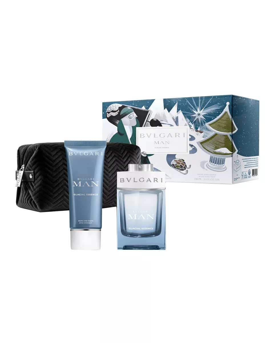 Bvlgari Estuche de regalo Eau de Parfum Bvlgari Man Glacial Essence Bulgari DescripciónComposición del estuche:Eau de Parfum vaporizador 100 ml + Loción para después del afeitado 100 ml + Neceser.Asociada con el hielo, Bvlgari Man Glacial Essence encarna la determinación y las sensaciones puras de las más altas cumbres. inspirada en el aire gélido, Bvlgari Man Glacial Essence emana un frescor chispeante, provocando una plenitud liberadora y una sensación intensa de grandeza interior.notas de salida: bayas de enebro, jengibre y geranionotas de corazón: madera de sándalo, concreto de lirio y artemisianotas de fondo: madera de cedro, maderas blancas y almizclesNota principal: fougère