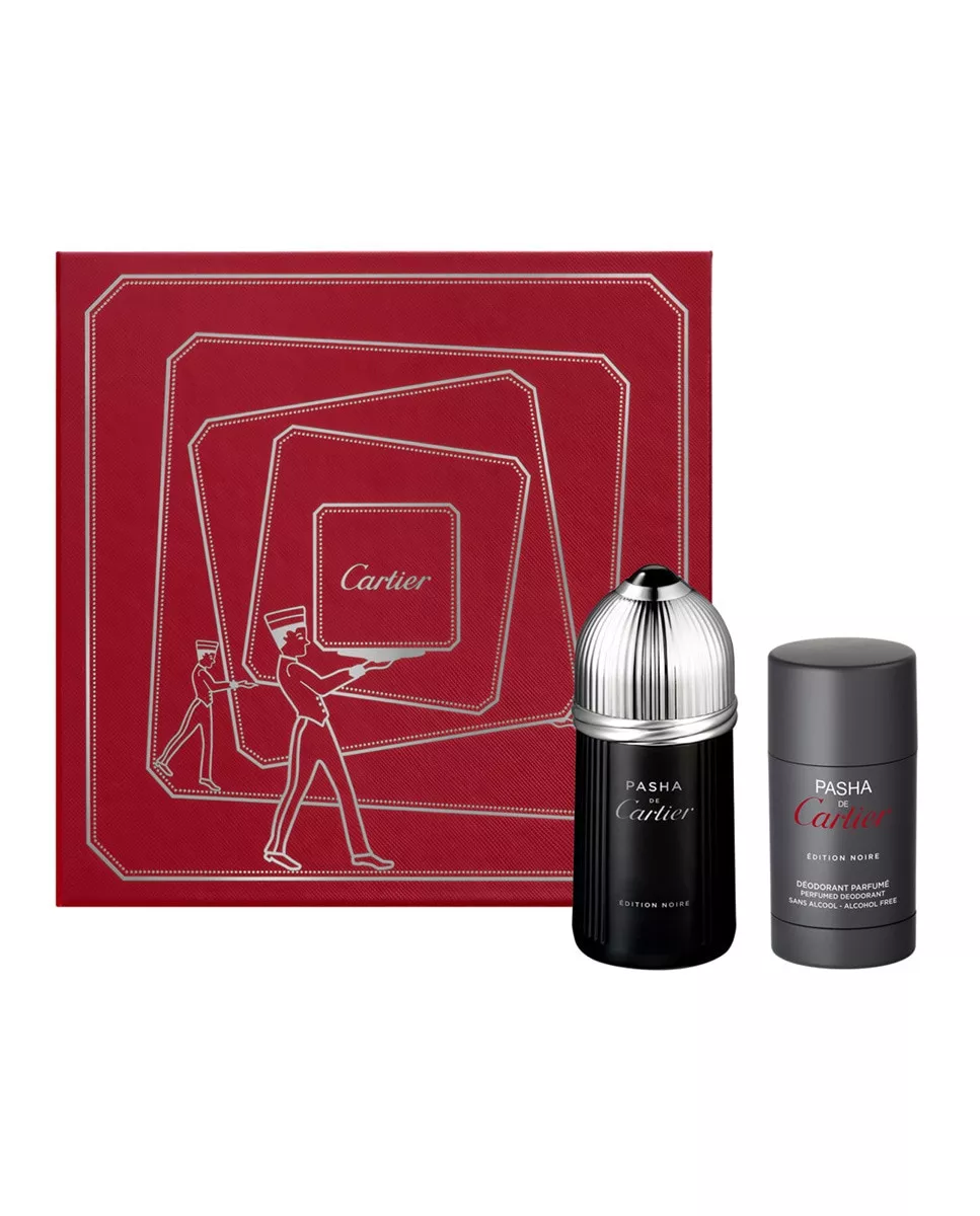 Cartier Estuche de Regalo Eau de Toilette Pasha Edition Noire Cartier DescripciónComposición del estuche:Eau de Toilette vaporizador 100 ml + Desodorante stick 75 ml.La inspiraciónUna fuerza de atracción irresistible. Como si todo girara alrededor de este frasco con los tres anillos legendarios y su cabuchón estriado. Un homenaje a los capitanes de los barcos, antaño apodados "pasha".Un magistral acorde helecho elevado gracias a la presencia de la lavanda fresca y del pachuli.Con los pies firmes en la tierra y la cara al viento, este perfume es para los hombres que son sensibles a la llamada de la elegancia.Nota principal: Fougère