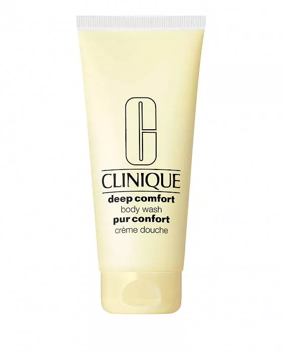 Clinique Gel de ducha Deep Comfort? Body Wash Clinique DescripciónQué EsGel de baño suave y aterciopelado que limpia suavemente tu cuerpo.Qué Hace La espuma cremosa se aclara fácilmente, sin que la piel pierda su hidratación. Deja la piel sintiéndose cómoda. Ideal para pieles sensibles. Cómo Se UsaHumedece el cuerpo en la ducha o el baño. Aplicar una pequeña cantidad de producto en espuma en la palma de la mano (o un paño o esponja vegetal) para limpiar el cuerpo. Aclarar bien..Humedece el cuerpo en la ducha o el baño. Aplica una pequeña cantidad de producto en espuma en la palma de la mano (o un paño o esponja vegetal) para limpiar el cuerpo. Aclara bien..Limpia e hidrata suavemente tu cuerpo.