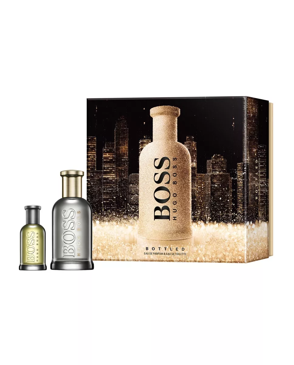 Hugo Boss Estuche de regalo Eau de Parfum Boss Bottled Hugo Boss DescripciónComposición del estuche:Eau de Parfum vaporizador 100 ml + Eau de Toilette vaporizador 30 ml.Creado para hombres ambiciosos y decididos, listos para afrontar cualquier reto que se les presente.Invítele a celebrar con oro esta temporada navideña con un elegante set de regalo de BOSS Bottled, vestido con brillantes copos de nieve dorados para una mágica impresión navideña.BOSS Bottled Eau de Parfum aporta una nueva intensidad a la calidez y la vitalidad de la firma intemporal BOSS Bottled. Los sentidos se despiertan con un estallido de manzana y bergamota, que contrasta con la esencia de pimienta negra del cuerpo. El corazón especiado se despliega con los cálidos y adictivos aceites de cardamomo y canela. Con un poderoso equilibrio de fuerza y sofisticación, las notas de fondo de vetiver oscuro y almizcle evolucionan con el paso del tiempo, aportando una firma correosa y ahumada.Vibrante y sensual, el Eau de Toilette de BOSS Bottled desprende distinción y sofisticación. Equilibrada por una nota de salida fresca y afrutada, el corazón cálido y especiado está dominado por los geranios y aderezado con una pizca de clavo. La nota de fondo es decididamente masculina, una vibrante armonía de sándalo, cedro y vetiver. El hombre BOSS está preparado para triunfar: centrado, decidido y ambicioso. Sus rituales diarios de preparación, de los que BOSS Bottled es una parte integral de su búsqueda personal del éxito. Este set de regalo de Navidad contiene:- BOSS Bottled Eau de Parfum de 100 ml- BOSS Bottled Eau de Toilette de 30 mlRegálele la experiencia completa de la fragancia BOSS Bottled con este set de regalo de Navidad.Nota principal: Oriental