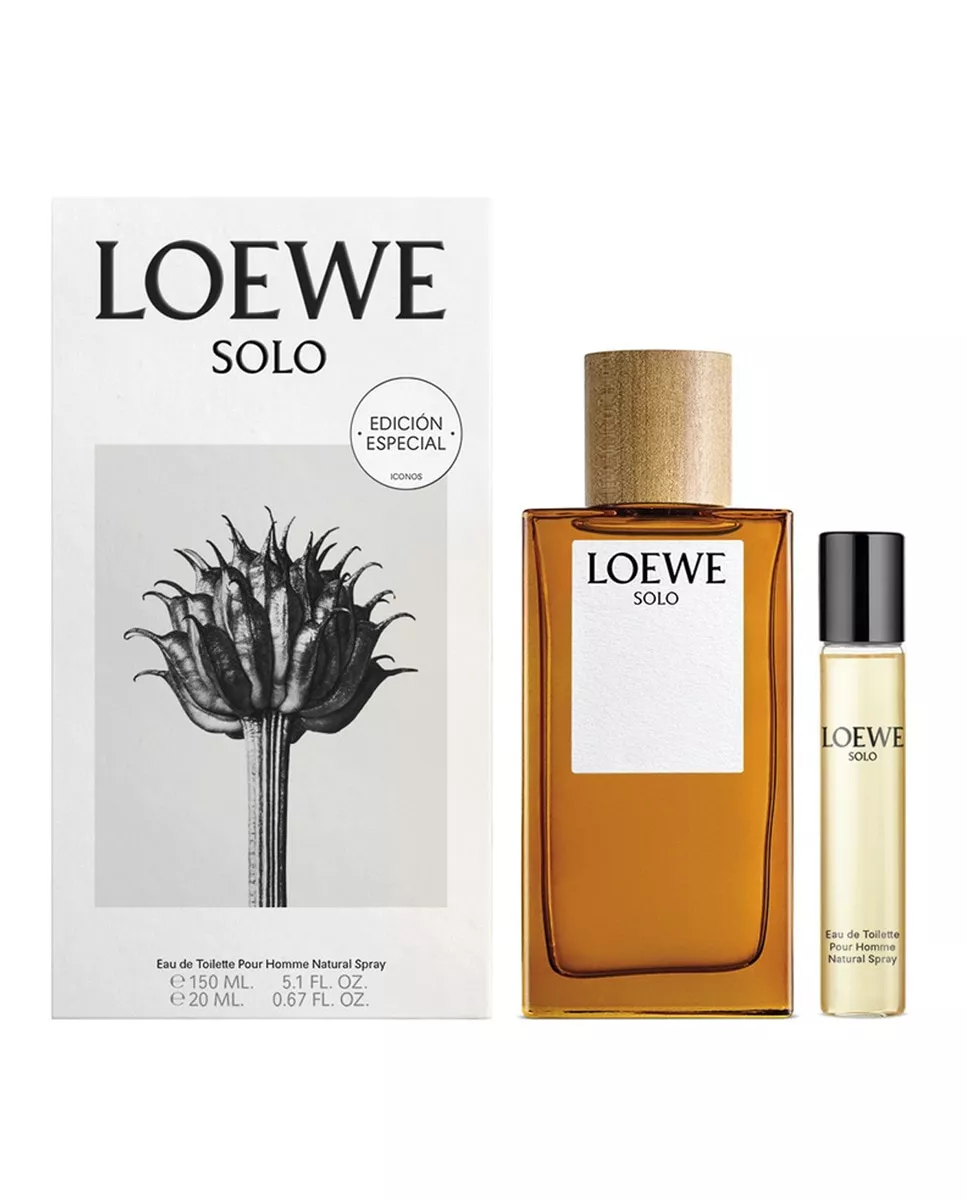 Loewe Estuche de regalo Eau de Toilette Loewe Solo 150 ml Loewe DescripciónComposición del estuche:Eau de Toilette vaporizador 150 ml + Vial 20 ml.Loewe Solo es una familia de fragancias inspiradas en la puesta de sol: un estado de armonía y equilibrio entre el día y la noche. Fragancias balanceadas.Loewe Solo Eau de Toilette es una fragancia especiada y genuina, en la que contrastan las notas de guayaba con las notas de comino y las notas de almizcle frente a la mandarina italiana del acorde hespéride. La armonía de los extremos.Este Eau de Toilette aparece encapsulado en un bloque de vidrio puro y translúcido de color ámbar tostado.Nota principal: AromáticoAcordes Olfativos:GuavaLavandaCachemiraPachuliMadera de GayacBergamota de SiciliaMandarina italiana LimónCominoNuez moscadaCanelaTomilloAlmizcleÁmbar