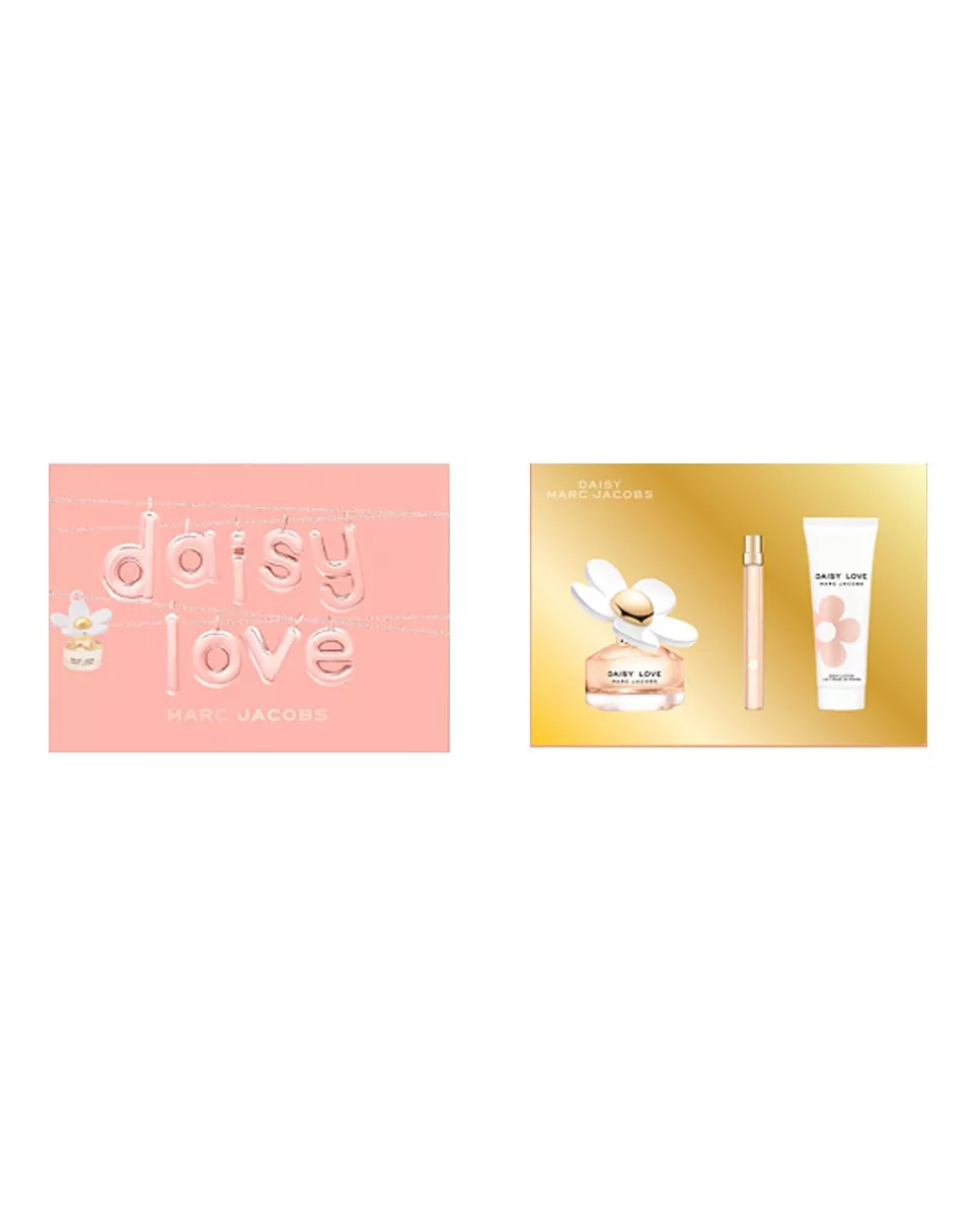 Marc Jacobs Estuche de regalo Eau de Toilette Love Marc Jacobs DescripciónComposición del estuche:Eau de Toilette vaporizador 100 ml + Loción corporal 75 ml + Vaporizador 10 ml.Adictiva e irresistible, Daisy Love Marc Jacobs Eau de Toilette para ella llena el ambiente con un contagioso amor a la vida. El regalo perfecto. MJDaisy.Adictiva e irresistible, Daisy Love llena el ambiente con un contagioso amor por la vida. Creada por el maestro perfumista Alberto Morillas, esta radiante fragancia gourmet revela sus primeras notas en un vibrante estallido de bayas dulces. Los pétalos delicados del árbol de margaritas se mezclan con los almizcles chispeantes de cachemira y la madera de deriva para lograr un toque gourmet duradero y memorable.Una oda a la margarita icónica de Marc Jacobs, Daisy Love florece con una margarita de gran tamaño que se refleja en el cálido resplandor del jugo.El regalo perfecto. #DaisyLoveEste estuche contiene: -Daisy Love 100mL- Loción corporal 75mL- Spray de 10 ml.Notas:Gourmet. Floral. Bayas cristalizadas, Pétalos de árbol de margarita, Almizcles de Cachemir, madera de deriva.