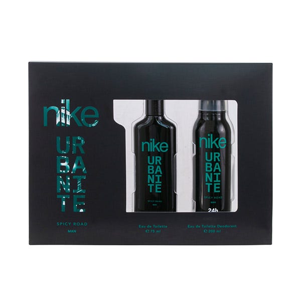 Nike Estuche de regalo Urbanite Spicy Road man Nike DescripciónComposición del estuche:Eau de toilette 75 ml + Desodorante 200 mlUna fragancia con fuerza y personalidad abrumadoras, que comienza con notas cítricas y acuosas para llegar a un robusto corazón de sólidas y especiadas notas de pimienta, geranio y madera de cedro.Su fondo ambarado cierra este perfume con una inolvidable combinación de pachuli y almizcle.Nota principal:Acuático - Amaderado