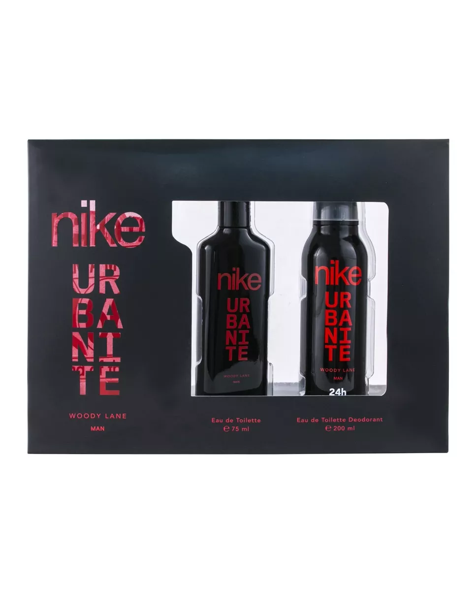 Nike Estuche de regalo Urbanite Woody Lane man Nike DescripciónComposición del estuche:Eau de toilette 75 ml/ + Desodorante 200 mlUna refrescante y frutal salida de bergamota, melón, manzana y piña se desvanece vertiginosamente para dar paso a un corazón amaderado que llena de significado a esta fragancia.En su fondo, sobrias notas de vetiver y pachulí se funden con suaves aromas de haba tonka y vainilla.Nota principal:Oriental - Amaderado