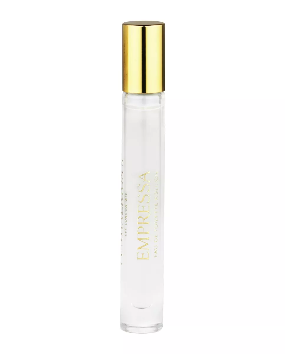 Penhaligon's Eau de Toilette Roll-on Empressa 7.5 ml Penhaligon's DescripciónComo cabría esperar, Empressa siempre viaja con estilo: perlas abundantes, espejos y sedas finas. Al igual que su aroma, deja una impresión seductora y duradera, pero sus aires nobles se visten de una gracia elegante. Las flores y los frutos se combinan y se domestican de una forma exquisita, lo que da como resultado un perfume dulce que no tiene ni un ápice de empalagoso. Una rosa de Oriente medio, de Damasco, le aporta delicadeza, mientras que el geranio y la pimienta le confieren brío. La trilogía de apertura (naranja sanguina, bergamota y mandarina) actúa como una sonrisa seductora y radiante. Pero lo que perdura de Empressa son las sensuales profundidades del ámbar, el pachulí y las maderas preciosas. Puede que lleve siempre perlas inmaculadas, pero Empressa le tiene un apego secreto a las sedas y las especias. Brillantes, suaves y profundamente sensuales son las texturas de este velo lujoso y luminoso.Notas:Salida: Naranja sanguina, Bergamota, Mandarina. Corazon: Melocotón, grosella negra, zarzamora, rosa, neroli, geranio, cardamomo, pimienta rosa y pimienta negra. Fondo: Vainilla, Cacao, Ámbar, Caramelo, Almizcle, Maderas, Madera de Sándalo, Pachulí.