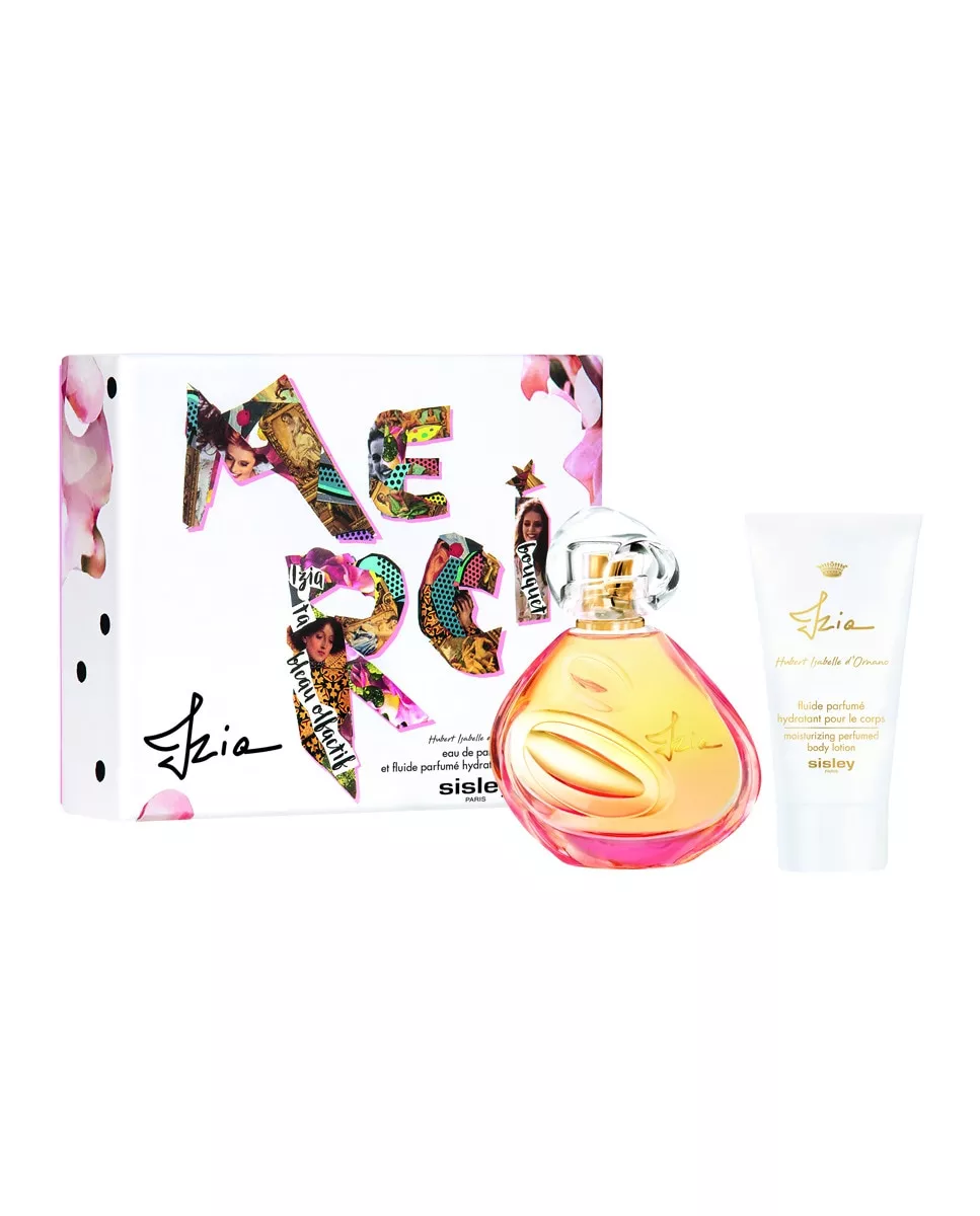 Sisley Estuche de regalo Eau de Parfum Izia Sisley DescripciónComposición del estuche:Eau de Parfum vaporizador 30 ml + Crema 50 ml.Izia es un perfume creado alrededor de una rosa misteriosa. Una rosa como encuentro que solo florece una vez al año, durante un instante. El punto de partida de un nuevo perfume moderno y multifacético. Deslumbrante y sofisticada en la salida, seduce con sus notas florales y aéreas con un fondo amaderado y envolvente.Los cofres de perfumes están alegramente decorados de letras y collages realizados por Isabelle d'Ornano.Representan el universo creativo de la Maison Sisley, las letras de inspiración prerrafelistas se mezclan formando la palabra « MERCI », rindiendo homenaje al espíritu de Navidad.Nota principal:Floral