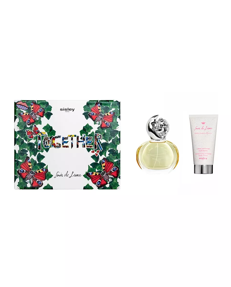 Sisley Estuche de regalo Eau de Parfum Together Holiday Soir de Lune Sisley DescripciónCofre compuesto por Soir de Lune 30ml y la Crème Parfumée Hydratant pour le corps 150ml.Este cofre compuesto por Soir de Lune 30ml y la Crème Parfumée Hydratant pour le corps 150ml decorado con la palabra "Together", la nueva campaña navideña de Sisley, nos invita a experimentar la alegría de reunirnos tras una larga separación. La majestuosa mariposa, inspiración de los collages surrealistas de Isabelle d'Ornano, ilustra el poder de la unión, el sentimiento de libertad y el espíritu de celebración. Cuando se reúnen, las mariposas se convierten en una sola y nos recuerdan la felicidad y la alegría de dar. Este colorido collage contrasta con el blanco impoluto de la caja y se hace eco del romanticismo y la feminidad de la fragancia Soir de Lune.