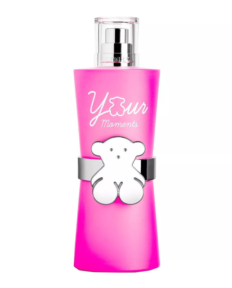 Tous Eau de Toilette Your Moments 90 ml Tous DescripciónLa fragancia para esa chica que no para, que tiene mil ideas y las comparte con todo el mundo, a la que todos quieren tener de amiga, la que siempre nos divierte con sus fotos, con todo lo que taguea y comparte.Para ella Tous ha creado Your Moments, su perfume.Porque lo único que no se ve en su perfil es que ¡¡huele genial!!Notas:Salida: Cocktail enérgico de frutas y especias. La mora negra, el albaricoque y l a mandarina potencian su presencia con el estimulo del Cardamomo.Corazón: Es floral con destellos de Jardín Sambac, un velo de Muguet y las chispas aterciopeladas de la Peonía.Fondo: Achiprado gracias al Musc Blanco enlazado con las notas de Pachouli armonizan una fragancia positiva, optimista y energizante.