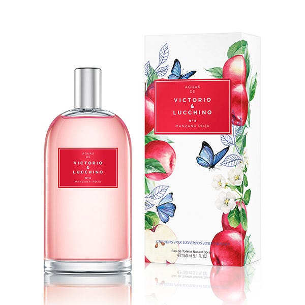 Victorio & Lucchino Eau de toilette nº 14 Manzana roja 150 ml Aguas de Victorio & Lucchino DescripciónLa suavidad de la aterciopelada frambuesa ensalza las refrescantes y tentadoras notas de manzana. Como contraste, un elegante y colorido corazón de flores blancas irradia feminidad a través de un susurro de rosaobtenido mediante métodos tradicionales. En el fondo, la calidez del ámbar se une a la madera y el musc para aportar un toque de salvaje personalidad a un aroma sensual y delicado.Notas:Florar - Cítrico - Amaderadp